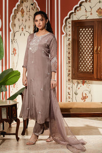 Mauve Embroidered Straight Kurta Set with Dupatta