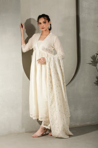 Off White A-Line Kurta Set with Pant & Dupatta - M