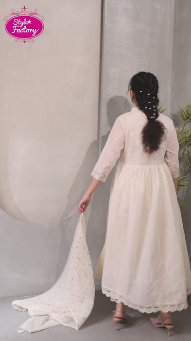 Off White A-Line Kurta Set with Pant & Dupatta – StyleFactory index