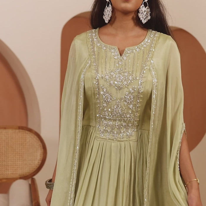Light Green Anarkali Gown with Embroidered Yoke