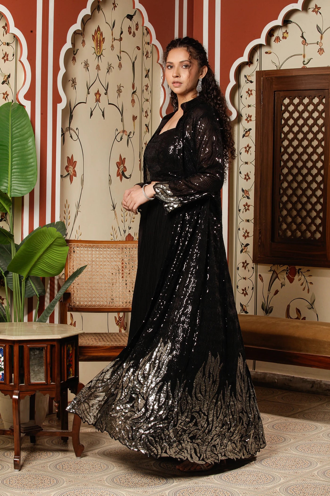 Transform any festive occasion with this dazzling Indo Western Dress. The intricate embroidery and sequin work make you the center of attention, ensuring you leave a lasting impression at every event.